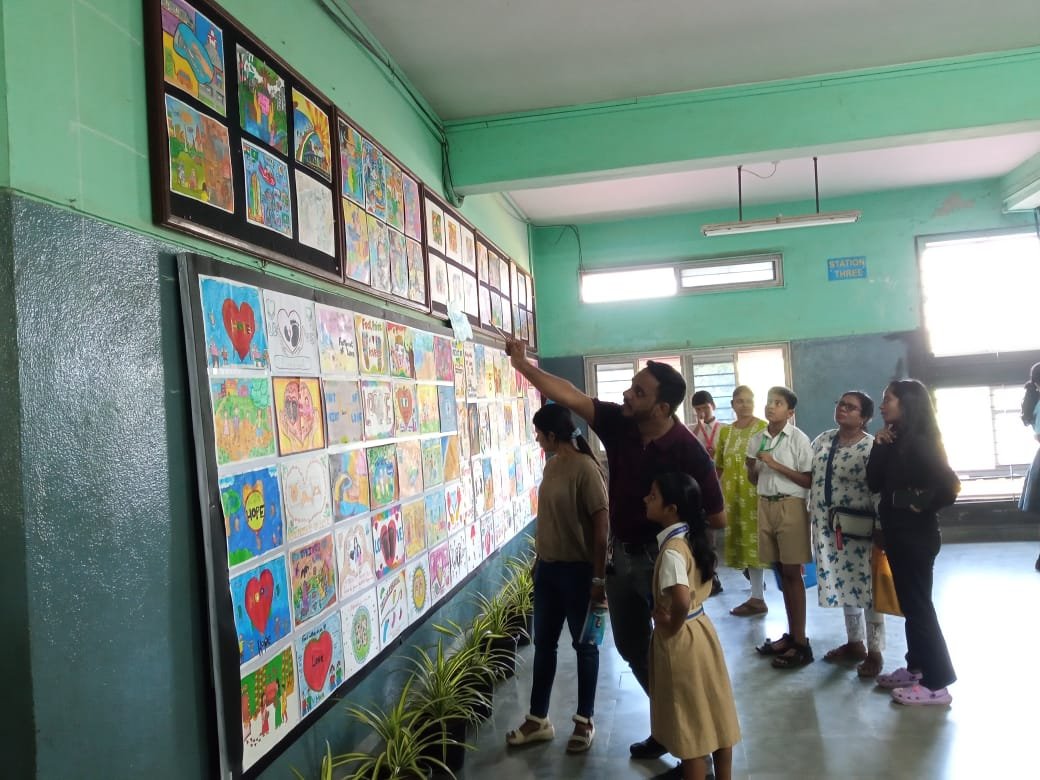 The artwork was created in the school premises on 3rd and 4th November and submitted by 6th November, after which it was arranged and displayed for viewing during the School Open Day on 8th November, 2025. The three floors of the school were transformed into a gallery of colour, meaning, and shared emotions. A special feature of the event was the enthusiastic participation of parents, who contributed their own artworks. Their involvement made the event intergenerational, celebrating artistic expression at home and school alike. It offered students a platform to explore imagination, build confidence and communicate ideas visually. The school extends heartfelt appreciation to the Art Faculty for their guidance, to the students for their sincere effort, and to the parents for their encouraging support. The exhibition truly echoed the spirit of journeying together, leaving behind footprints of love, and walking forward with hope, fulfilling the message of being Pilgrims of Hope in our daily lives.