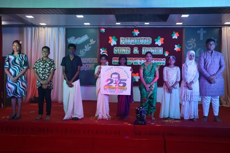 Don Bosco High School & Jr. College Naigaon, organized an exhilarating Inter-House Patriotic Song and Dance Competition on 2nd August, 2024. The event aimed at fostering a sense of national pride and unity among students of the Primary and Secondary Section, while showcasing their artistic talents. The competition saw enthusiastic participation from all four houses: Red, Blue, Green and Yellow.