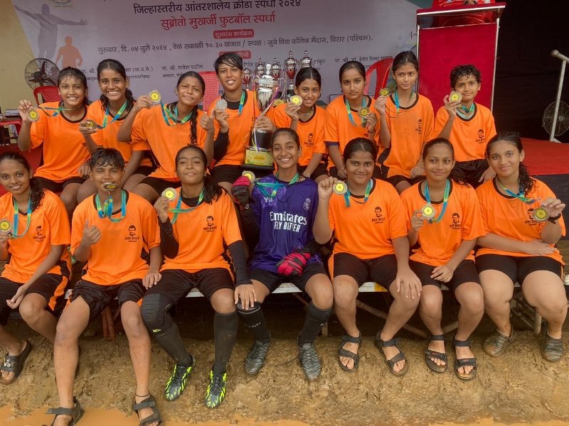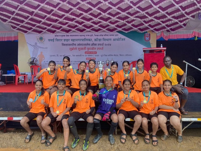 The Subroto Mukherjee Football Tournament is a prestigious event that attracts schools from across Palghar District, aiming to promote football and encourage young talent in the sport. This year’s tournament featured intense competition and showcased the determination and sportsmanship of all participating teams. Our under-17 girls’ team exhibited exceptional talent and teamwork throughout the tournament, demonstrating their skills in each match they played.