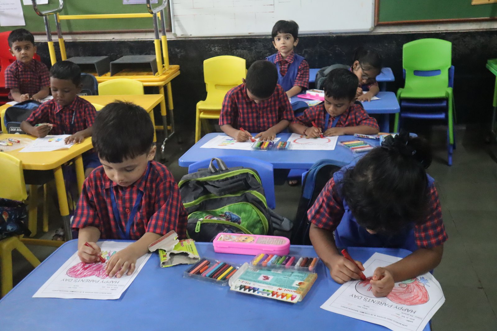 Colouring competition for the KG section was held in the respective classrooms. This enhances their fine motor skills.