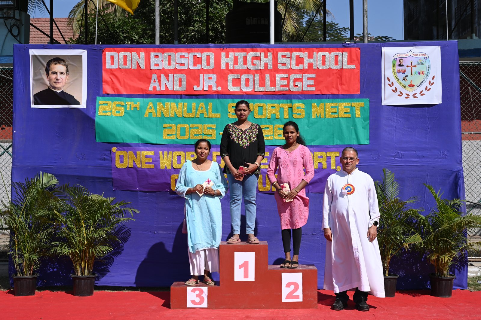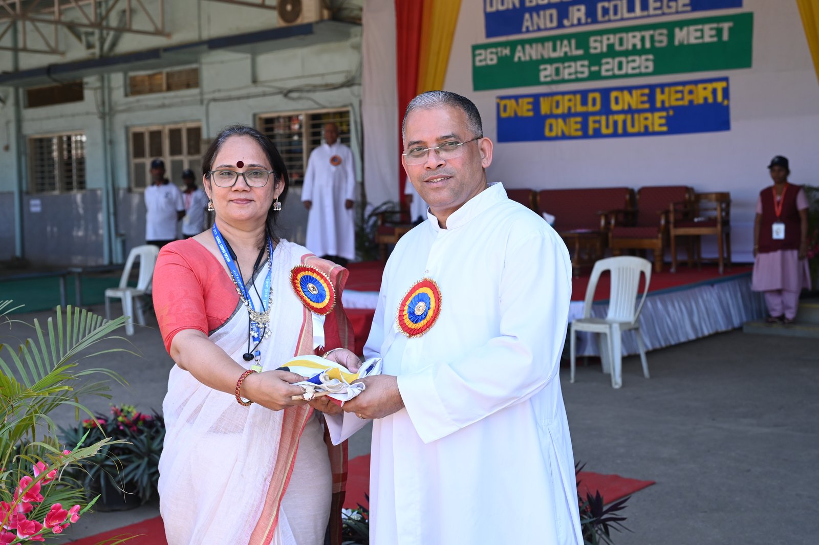 Towards the conclusion, special events for parents and non-teaching staff fostered inclusiveness and joy, strengthening the sense of community. The programme concluded with the awarding of championships, the presentation of the winning house trophy, and the formal closing of the Sports Meet by the Guest of Honour, Mrs. Smita. Lopes. The 26th Annual Sports Day stood as a true celebration of fitness, unity, and sportsmanship, reaffirming Don Bosco’s commitment to holistic education and the enduring values of “One World, One Heart, One Future.”