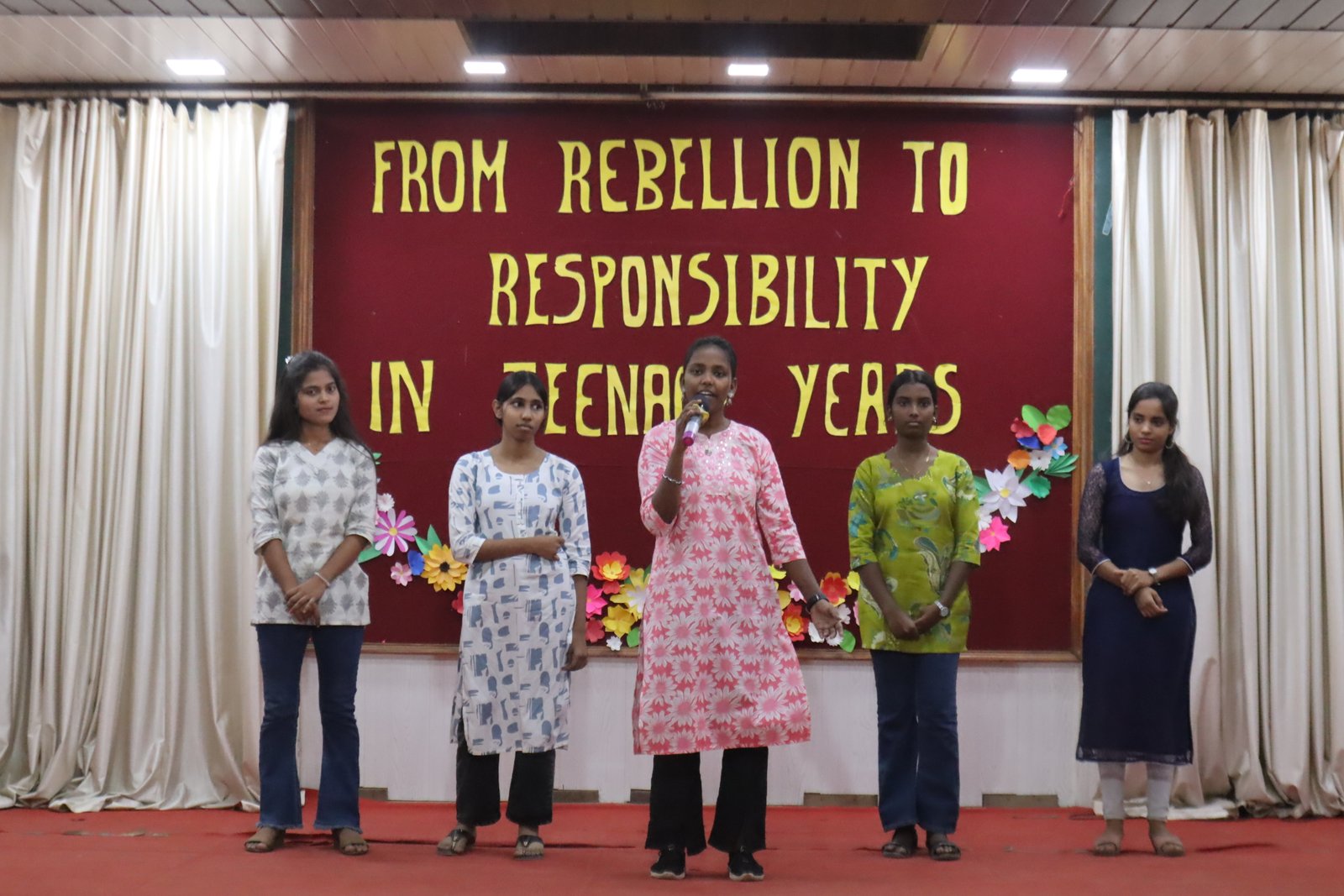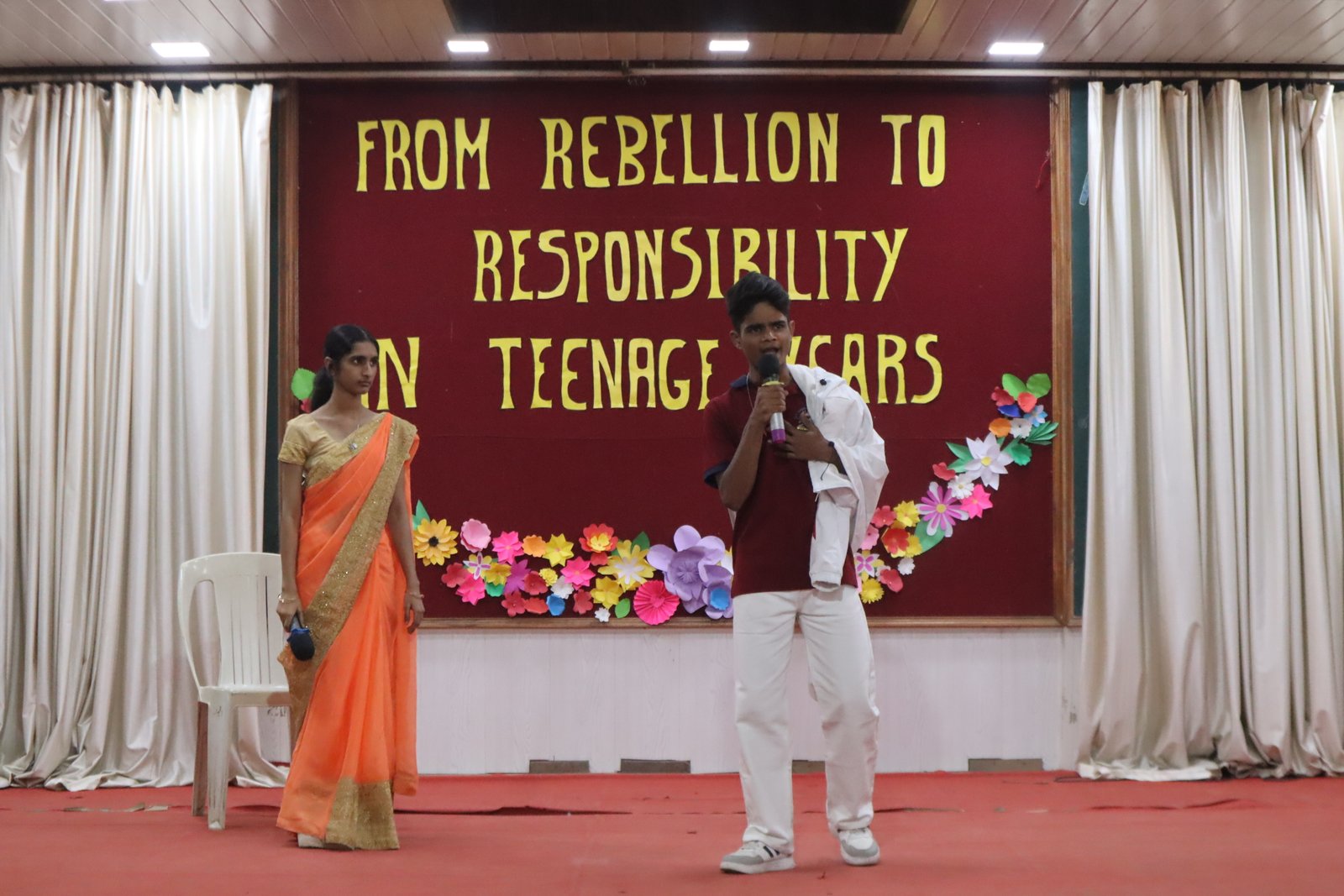 The assembly began with a prayer seeking God’s guidance followed by the hymn “Make Me a Channel of Your Peace.” The anchors introduced teenage years as a “storm and stress period,” where the desire for independence often clashes with parental concern.