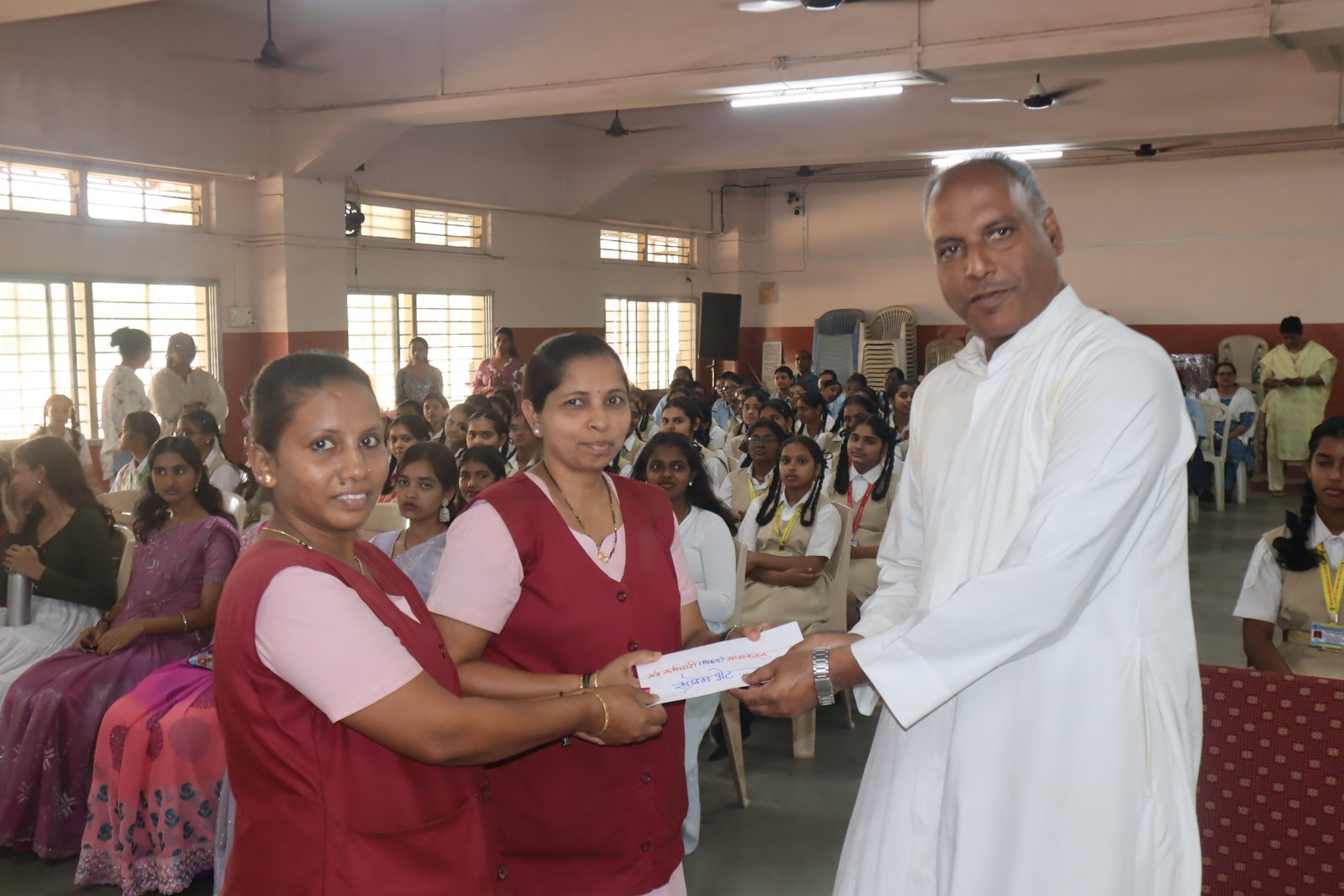 In his address, Fr. Dominic Martis expressed his heartfelt gratitude to the staff and students for their love, support, and cooperation throughout his tenure. He fondly reminisced about his time at Naigaon, describing it as a truly enriching and memorable chapter of his life. In a powerful and inspiring message, he urged everyone to remain true to their conscience, saying that one must always have the courage to do what is right rather than simply following the crowd. He emphasized the importance of integrity, conviction, and moral strength in shaping one’s character and future.