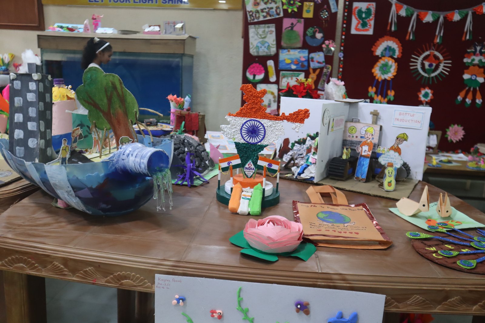 Beginning from August 13th to 18th, the school came alive with colour and creativity as students from classes 1st to 7th showcased an impressive array of art and craft exhibits. Using clay, recycled materials, leaves, old bottles, paper, and other eco-friendly resources, they transformed simple items into unique works of art. The creativity on display reflected both innovation and a commitment to sustainable living.
