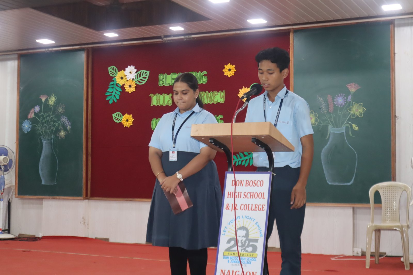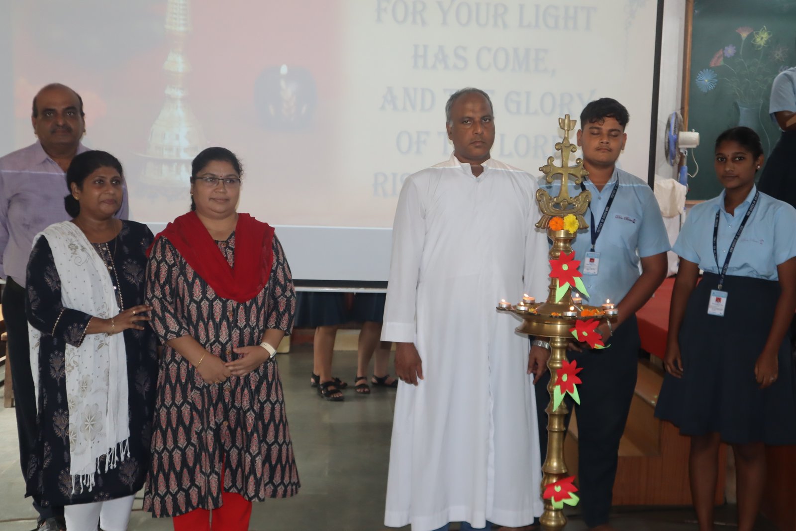 The prayer service commenced with a warm welcome to the dignitaries Rector Rev. Fr. Dominic Martis, College Supervisor Mr. Sanjeev Mujumdar, teachers and students.