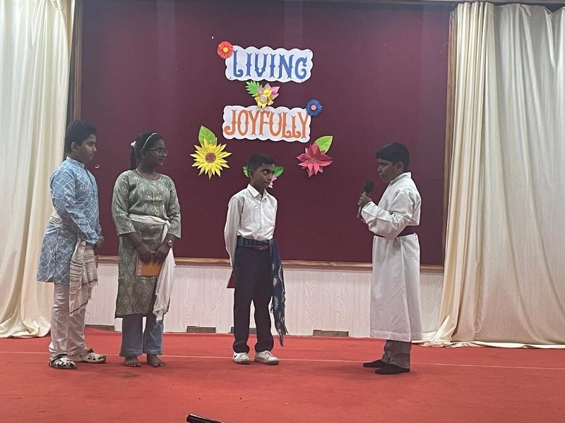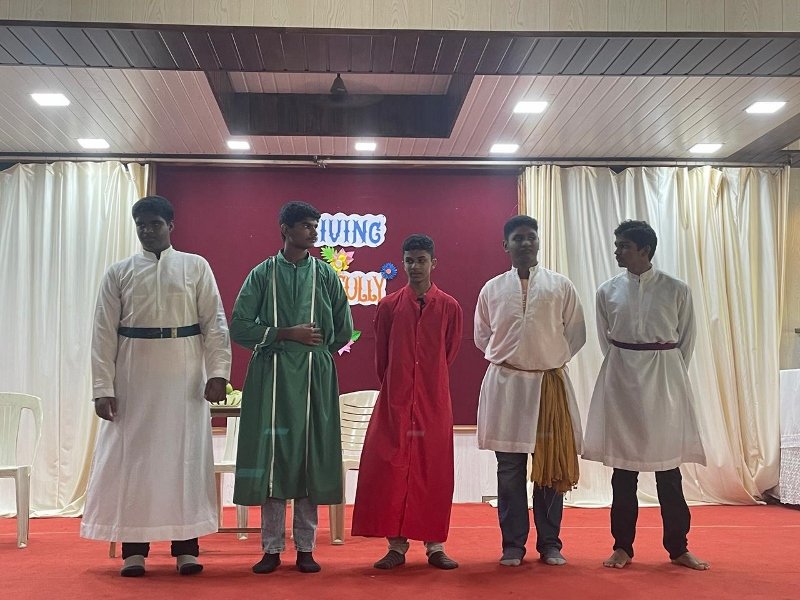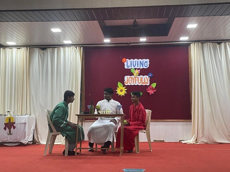 our students showcased their creativity and understanding of the Bible through a series of engaging skits based on various parables. This initiative not only demonstrated the students’ acting talents but also highlighted their deepening grasp of the Scriptures. The skits explored well-known parables such as “The Good Samaritan,” “The Prodigal Son,” “The Sower and the Seeds” and the parable of “The Talents”. The skits were both entertaining and educational, providing valuable insights into the teachings of Jesus. Near the conclusion of the event, Br. Royston Colaco spoke to the students, encouraging them to reflect on their experiences and to embrace a joyful life as a manifestation of their faith.