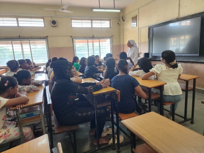 Sister Norma Fernandes, the superior of the Poor Sisters of Our Lady in Naigaon East, led a session with the girls to encourage self-reflection on their unique identities as creations of God. Through this session, the girls came to understand their individuality better and were able to share their personal experiences with her, which helped them find answers to many of their questions.