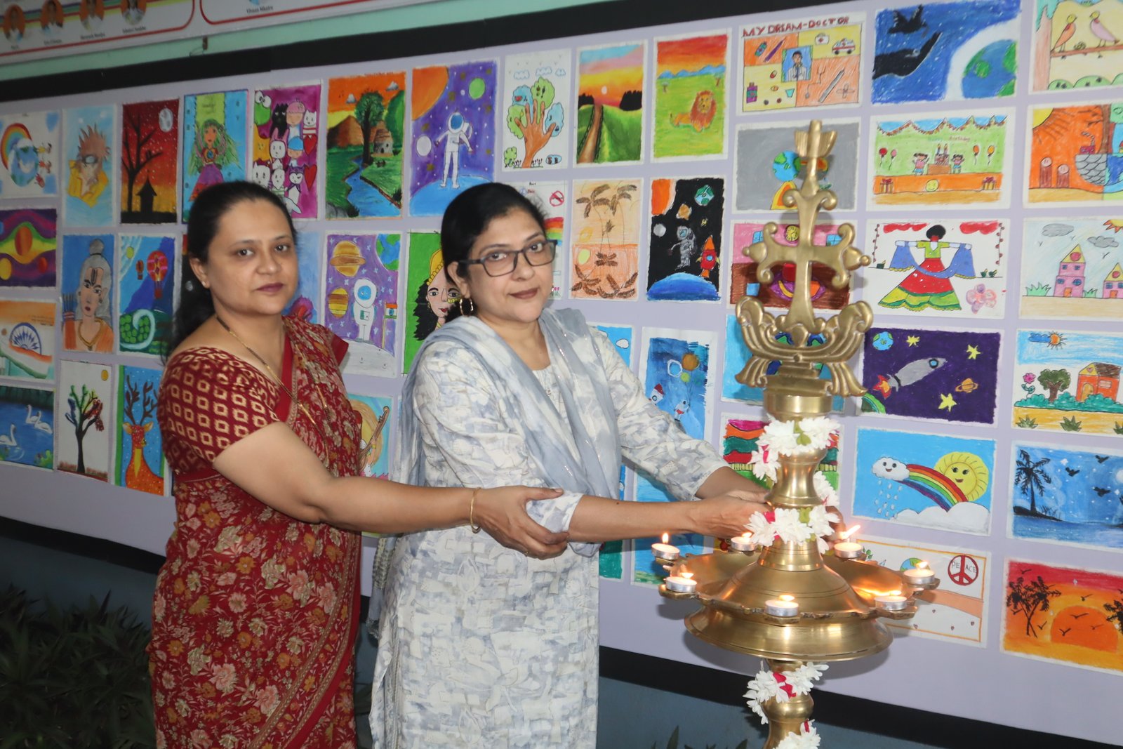 The artwork was created in the school premises on 3rd and 4th November and submitted by 6th November, after which it was arranged and displayed for viewing during the School Open Day on 8th November, 2025. The three floors of the school were transformed into a gallery of colour, meaning, and shared emotions. A special feature of the event was the enthusiastic participation of parents, who contributed their own artworks. Their involvement made the event intergenerational, celebrating artistic expression at home and school alike. It offered students a platform to explore imagination, build confidence and communicate ideas visually. The school extends heartfelt appreciation to the Art Faculty for their guidance, to the students for their sincere effort, and to the parents for their encouraging support. The exhibition truly echoed the spirit of journeying together, leaving behind footprints of love, and walking forward with hope, fulfilling the message of being Pilgrims of Hope in our daily lives.