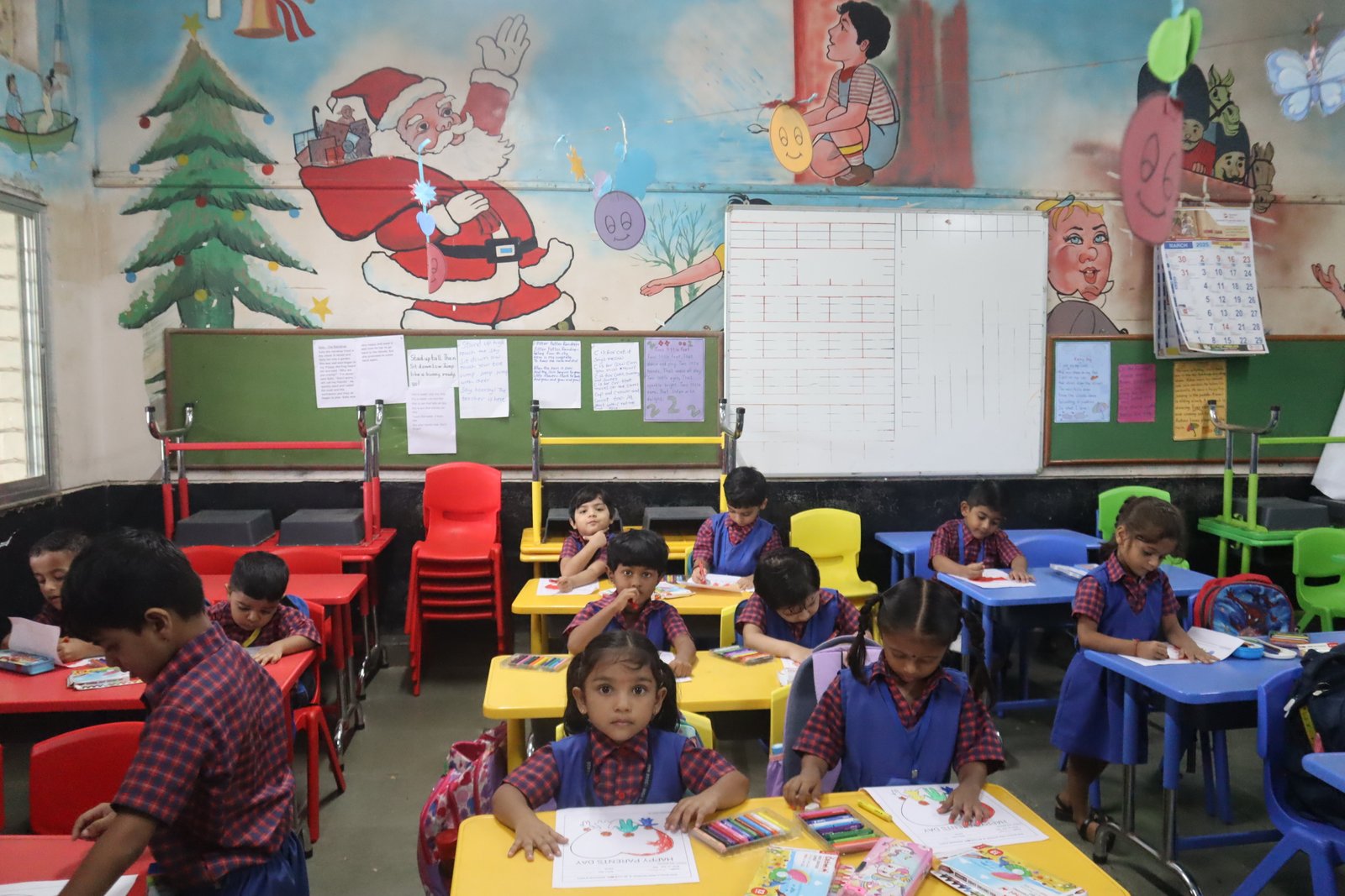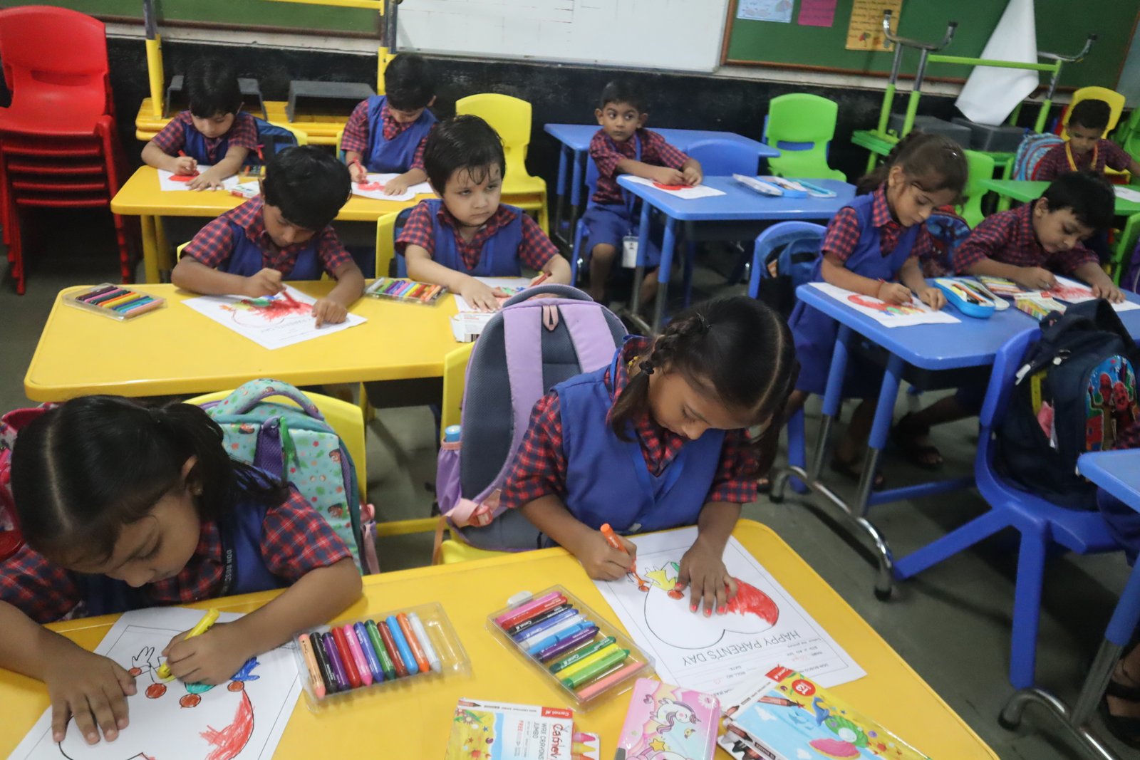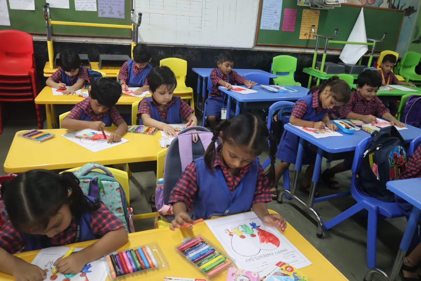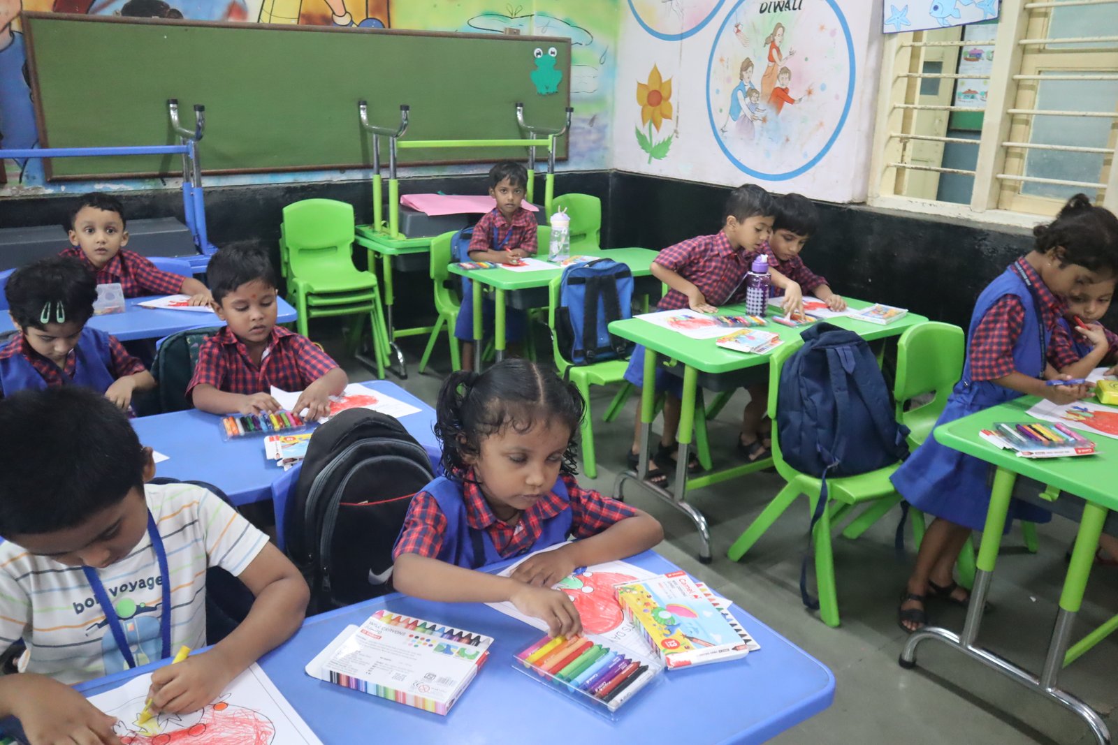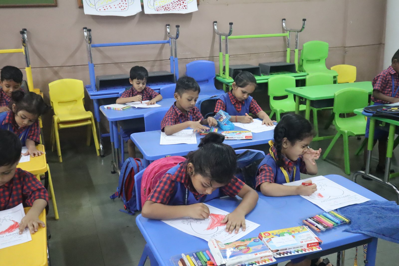 Colouring competition for the KG section was held in the respective classrooms. This enhances their fine motor skills.