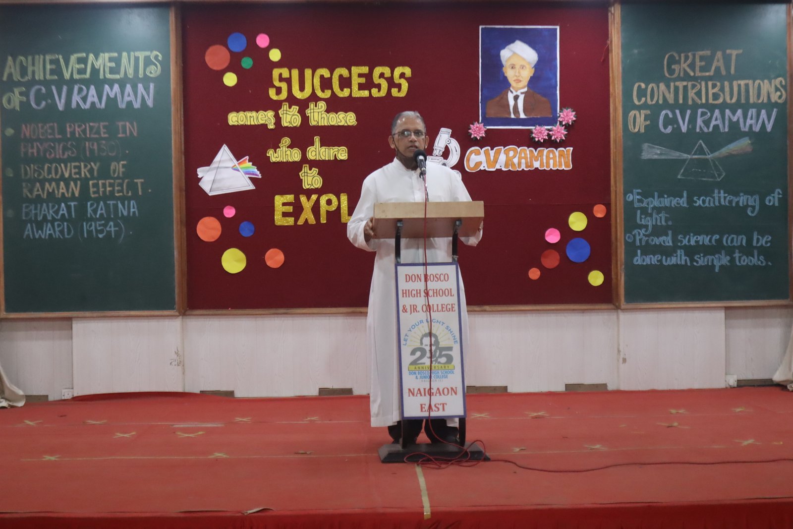 The campus of Don Bosco High School & Jr. College, Naigaon, came alive with vibrant energy as students and teachers celebrated Red House Day, dedicated to the house mascot, the renowned Indian physicist C. V. Raman. The special assembly highlighted the spirit of scientific curiosity, innovation, and perseverance that defined the life and achievements of the Nobel laureate.