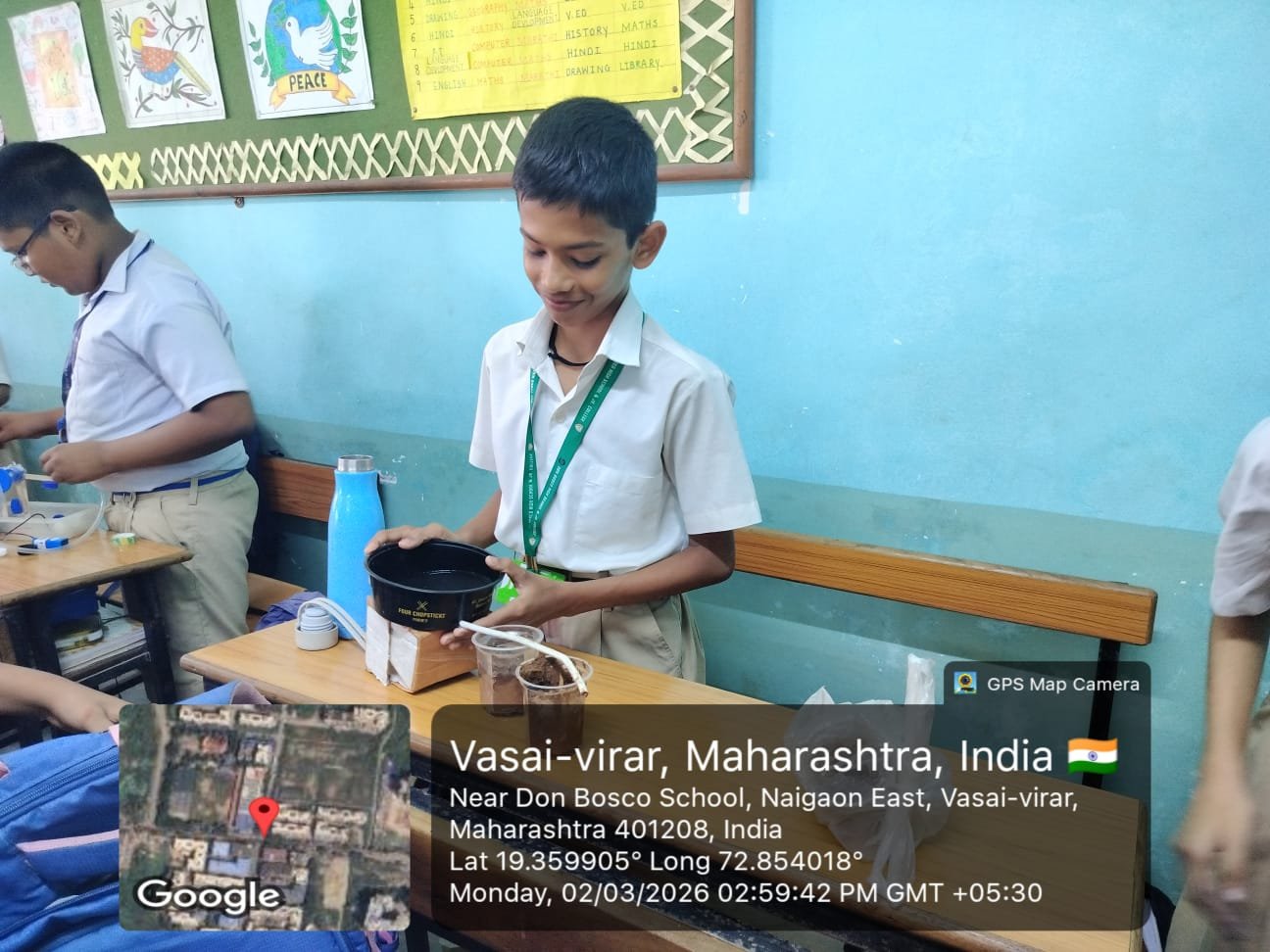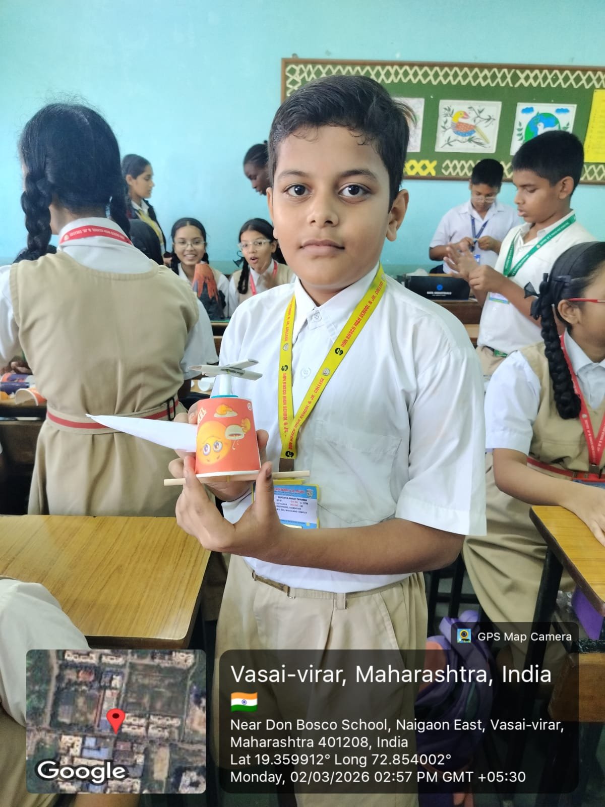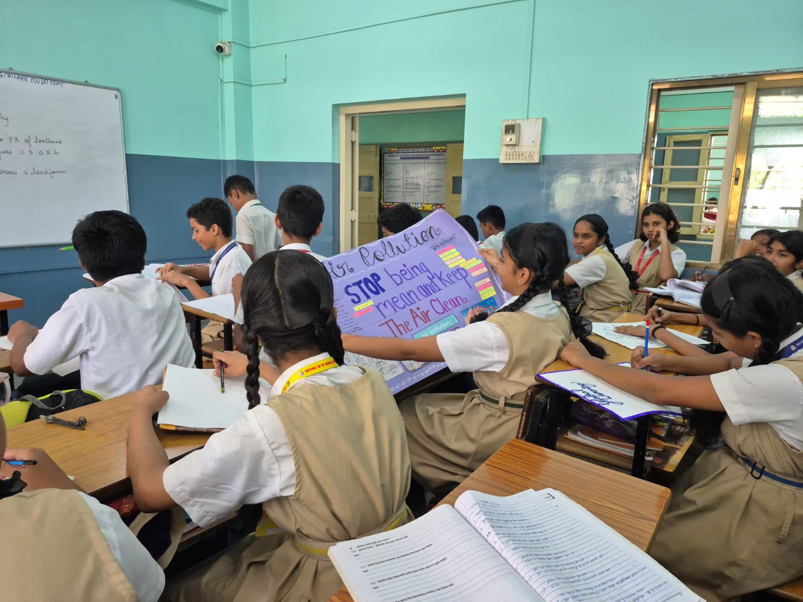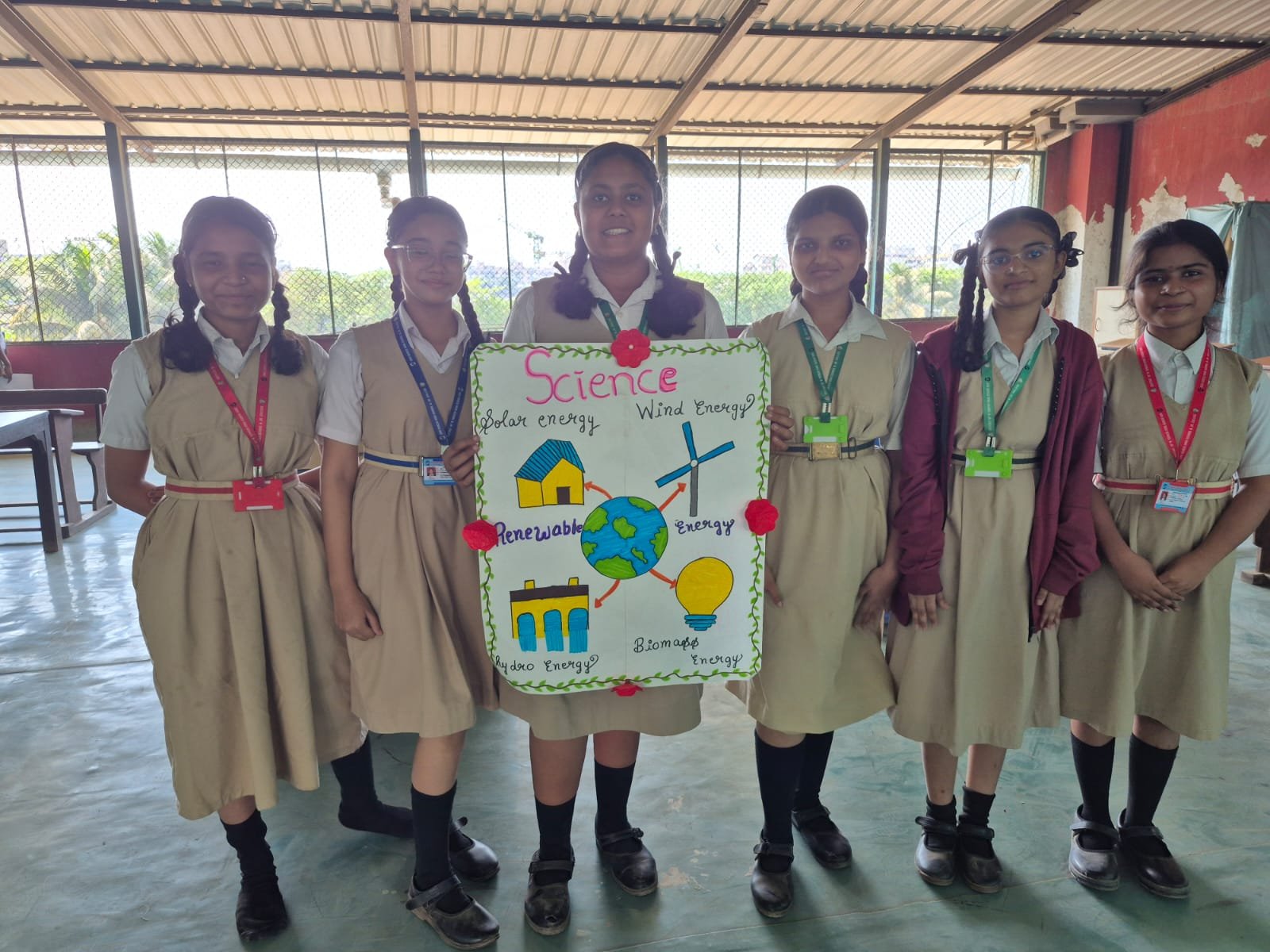 Students of Std V prepared charts on the themes Save Water and Save Trees, spreading awareness about conserving natural resources. Std VI students showcased their creativity through Best Out of Waste models, demonstrating how everyday materials can be reused to create useful scientific models. Std VII focused on Climate Change, identifying global environmental issues such as global warming, air pollution, deforestation, plastic pollution, water scarcity, and carbon emissions, and presenting possible solutions through informative posters and projects. Meanwhile, Std VIII explored the concept of Renewable Energy, learning about sources such as solar, wind, and hydro energy and highlighting the importance of clean and sustainable energy for the future.