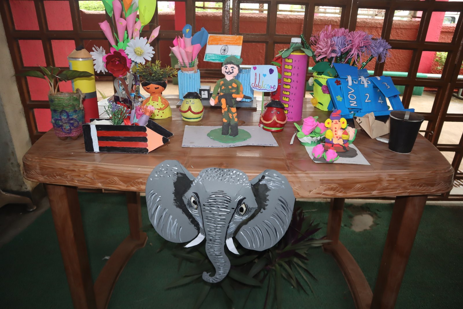 The corridors and notice boards of the school were adorned with paintings, sketches, collages, and thematic displays. Each piece told a story — from the beauty of nature and the urgency to protect it, to the valour of India’s freedom fighters and the pride of our cultural heritage. The students also prepared intricate craft articles such as decorative lamps, clay models, leaf art, and sculptures made from ‘best out of waste’, proving that art can be both beautiful and environmentally conscious.
