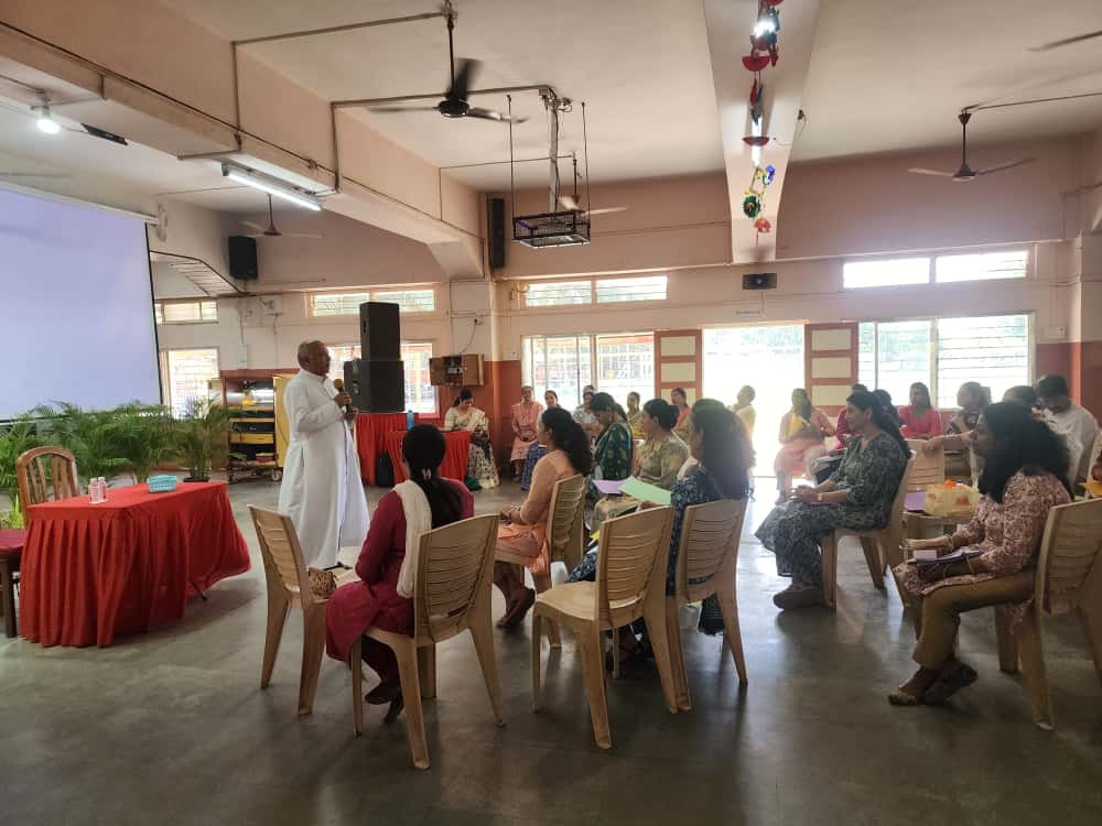 Fr. Joaquim made the session highly engaging by using the exploratory method to help teachers reflect on and identify the real issues present in their classrooms. Instead of simply lecturing, he encouraged observation, questioning, and critical thinking. He presented short insightful videos and meaningful movie clips, including a fascinating visual of the Waggle Dance Theory, used by honeybees discovered and decoded by Karl Von Frisch an Austrian Ethologist. Through this example, he beautifully highlighted how discipline, teamwork, responsibility, coordination, and systematic planning lead to success—even in nature. He further connected his ideas with the educational philosophy as advocated by great thinkers, emphasizing that learning happens best through experience and practical application. By doing so, he helped teachers understand that effective classroom management and the teaching-learning process improve greatly when students are actively involved, allowed to explore, and guided to think, plan, and work together. This approach laid a strong foundation for Action Research, as it inspired teachers to observe deeply, identify problems realistically, and find practical solutions through experimentation and reflection.